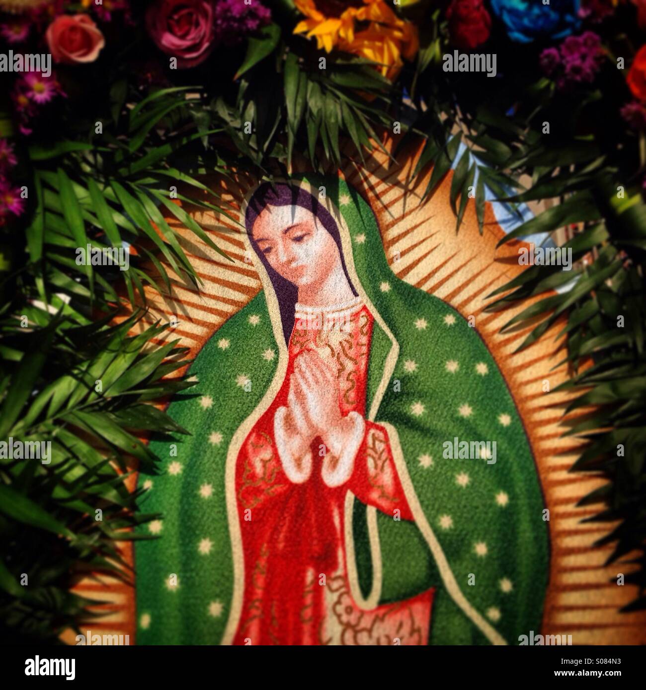 Su fiesta se celebra el 12 de diciembre y es una de las más importantes en México y América Latina. La leyenda cuenta que Juan Diego tuvo una visión de la Virgen en el cerro del Tepeyac en 1531. La Virgen le pidió que le construyera un templo en su honor y le dio una señal para que convenciera al obispo.