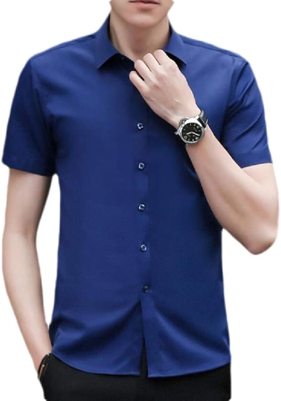 YIhujiuben Camisa de Vestir de Manga Corta con Botones para Hombre, Ajustada, Informal, de