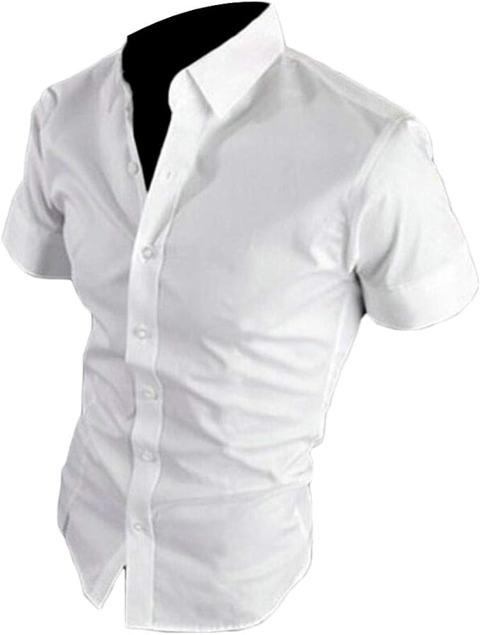 Gocgt Camisa de Manga Corta para Hombre, con Botones, Informal, sólida, Blanco, Large Amazon