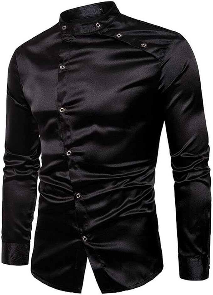 LISTHA Camisa de Manga Larga con Botones para Hombre, Negro, CNLarge Ropa