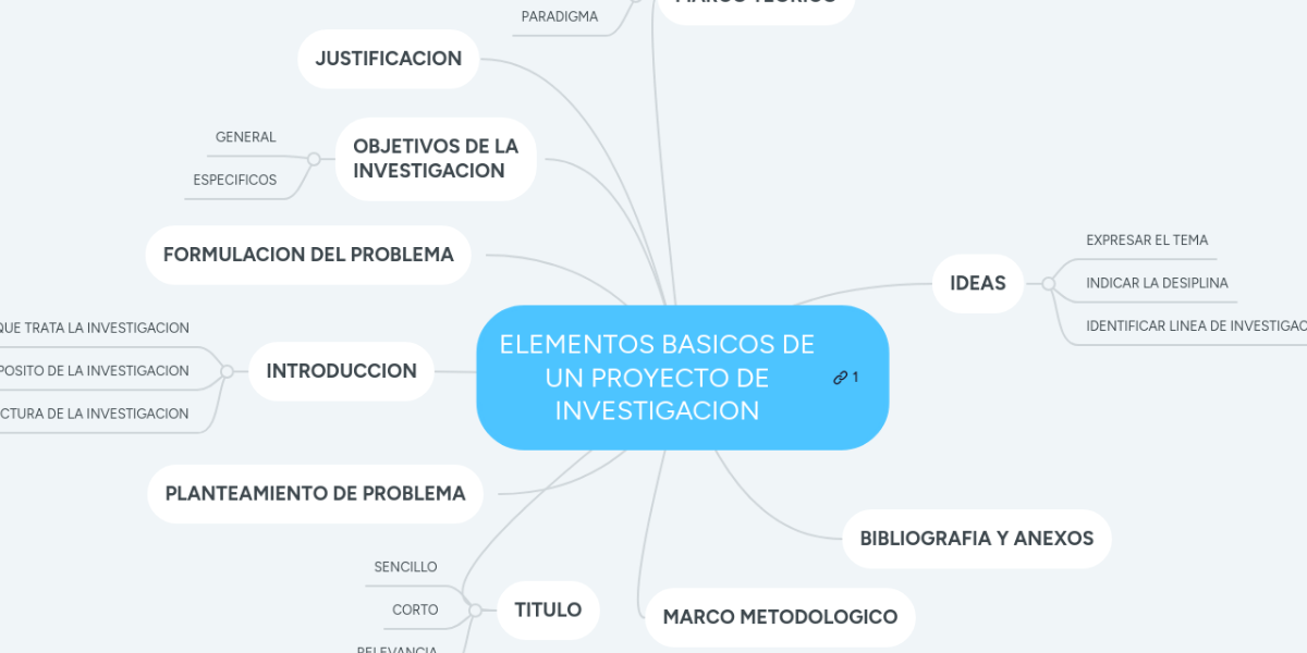 ELEMENTOS BASICOS DE UN PROYECTO DE INVESTIGACION MindMeister Mind Map