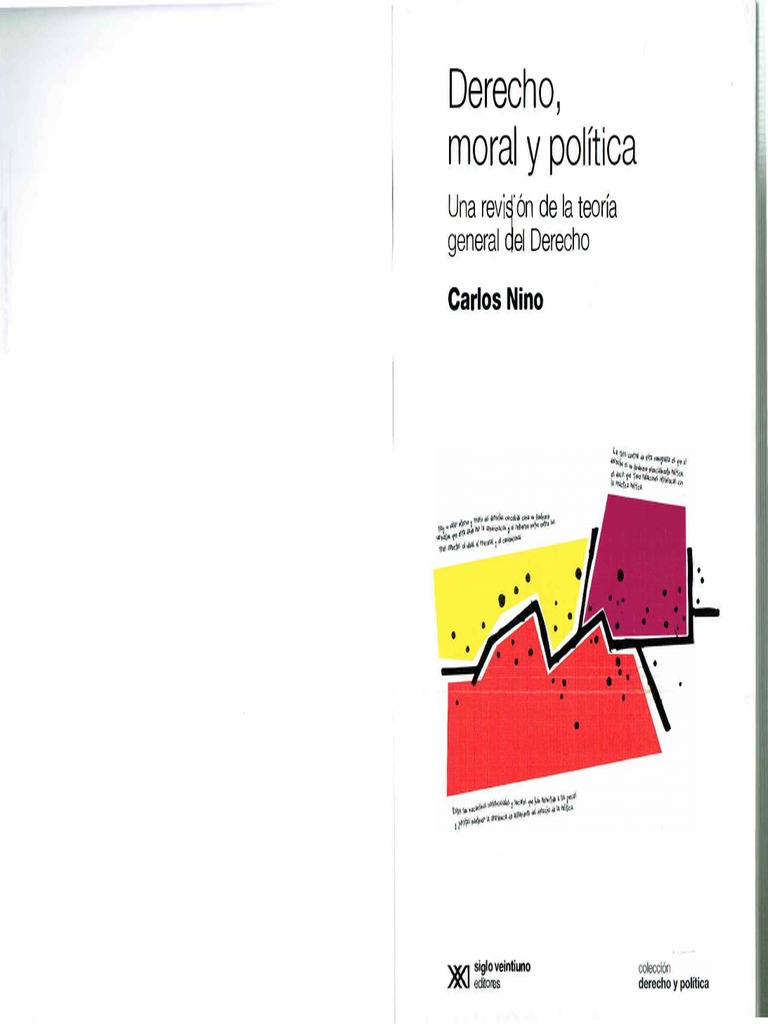 Información del libro. Dentro de la trayectoria de Carlos Nino, Derecho, moral y política es un libro excepcional. Pensado y escrito al calor del debate sobre la politización del derecho, se convirtió inmediatamente en un punto de referencia obligada. Contra los partidarios del positivismo jurídico -la concepción de que la ley existe.