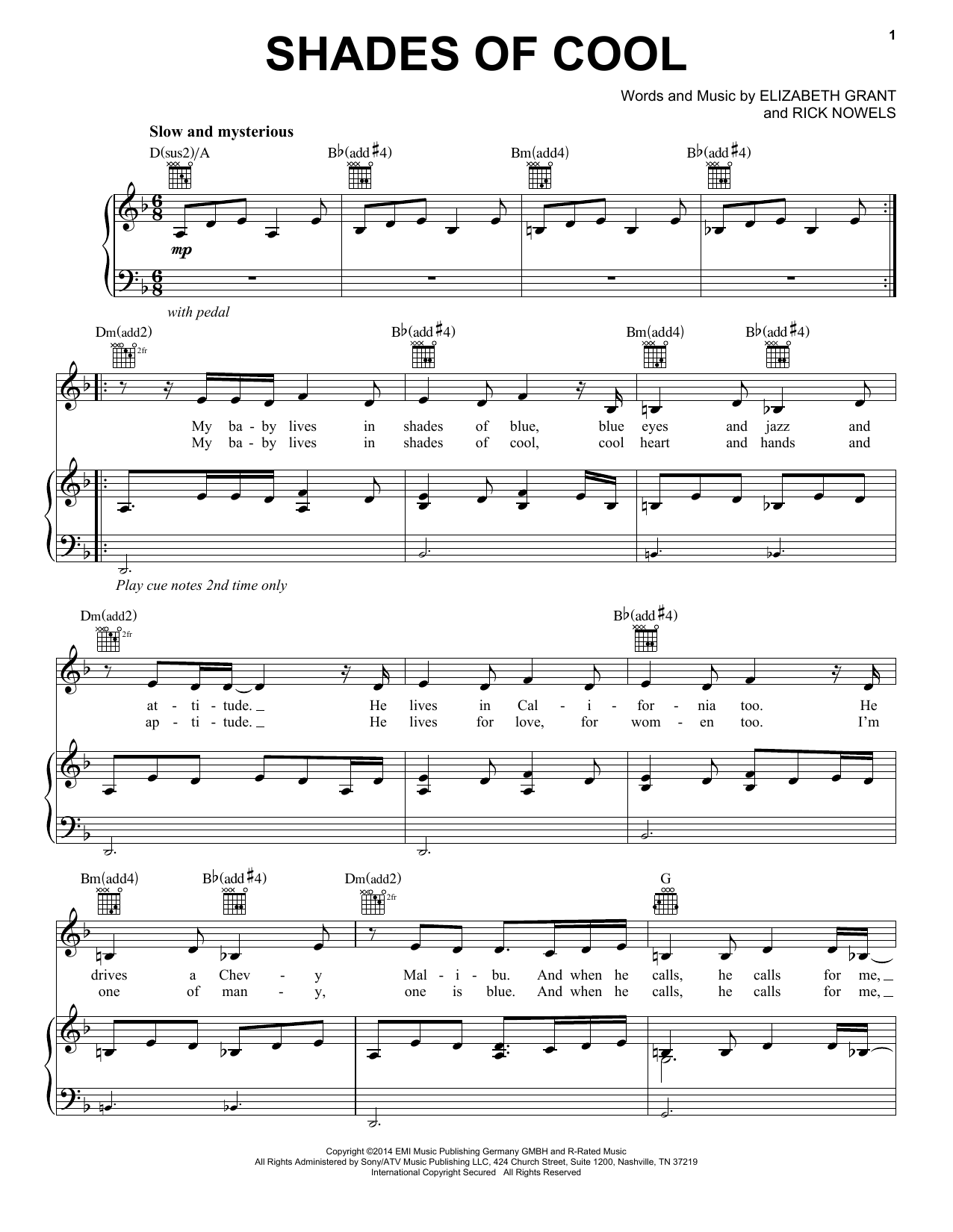 Shades Of Cool Sheet Music by Lana Del Rey Ldr, Lana del Rey and Lana del