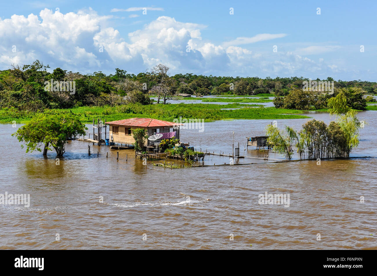 Temporada de lluvias como se ve desde el barco en el Río Amazonas, en Brasil Fotografía de stock