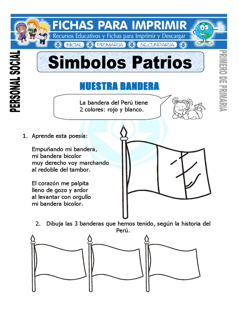 Ficha de Símbolos Patrios para Primero de Primaria Bandera Rojo