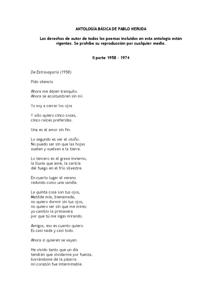 Antología poética de Pablo Neruda. Apuntes de Literatura Docsity
