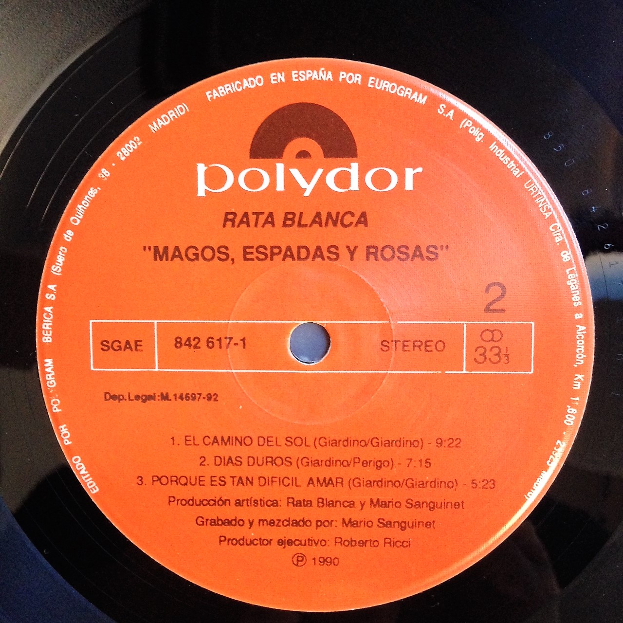 Magos, espadas y rosas, an Album by Rata Blanca. Released 24 April 1990 on Polydor (catalog no. 27519; Vinyl LP). Genres: Heavy Metal. Rated #257 in the best albums of 1990. Featured peformers: Mario Sanguinet (producer, recording engineer, mix engineer), Rata Blanca (producer, cover design).